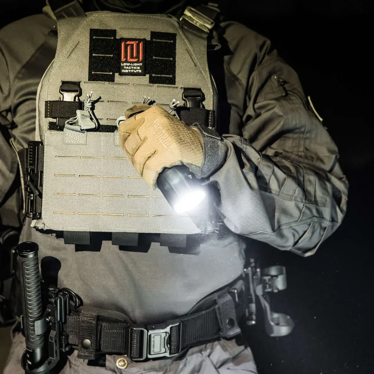 Una característica destacada del WL50 es su lente TIR (reflexión interna total) avanzada. Esta tecnología óptica optimiza la distribución de la luz, creando un haz uniforme y enfocado que es crucial para la rápida identificación de objetivos en escenarios tácticos. La salida de luz blanca constante de 550 lúmenes proporciona una iluminación confiable para una amplia gama de necesidades operativas.