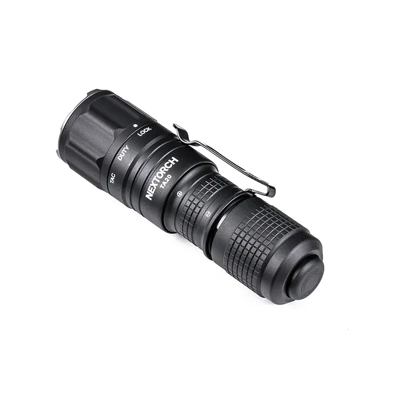 TA20 de NEXTORCH está diseñado para uso diario y para llevar con fines tácticos y ofrece un rendimiento excepcional para su tamaño. Esta linterna compacta cuenta con un haz de luz de 1000 lúmenes capaz de alcanzar 210 metros e incluye el anillo táctico FR-1. Diseñada para un funcionamiento rápido y sin esfuerzo, cuenta con una configuración de tres modos para un uso adaptable y un interruptor de luz estroboscópica patentado de un solo paso para un acceso instantáneo a la luz estroboscópica. La TA20 viene con un bisel de acero inoxidable y puntos de impacto de nanocerámica. La energía se suministra mediante una batería recargable 16340 o una alternativa CR123A desechable.
