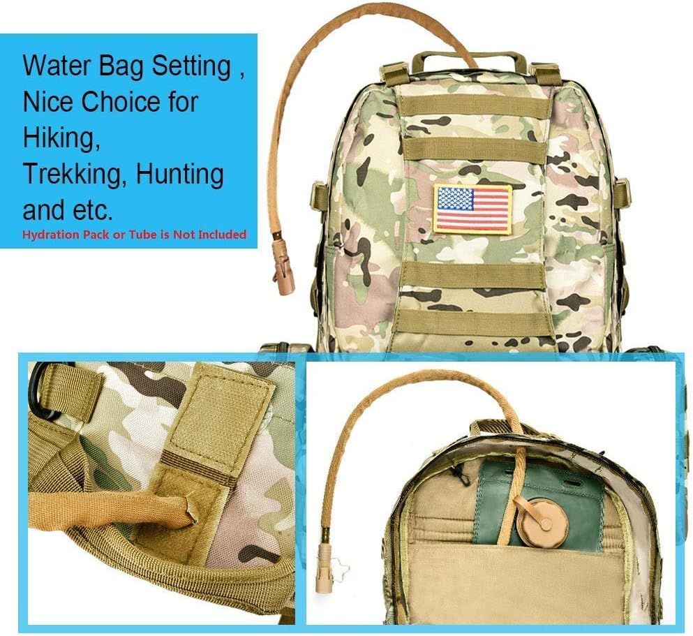 • El sistema Molle de esta mochila militar Molle te permite fijar fácilmente equipo al aire libre, más bolsas y colchoneta de dormir (la bolsa de agua no está incluida).