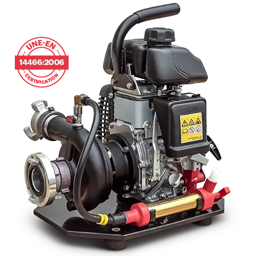 Motor de combustión de 4 tiempos alimentado con gasolina, con certificaciones CARB y EPA. Incorpora un embrague para arranque fácil, y que permite detener la descarga de agua sin parar el motor.